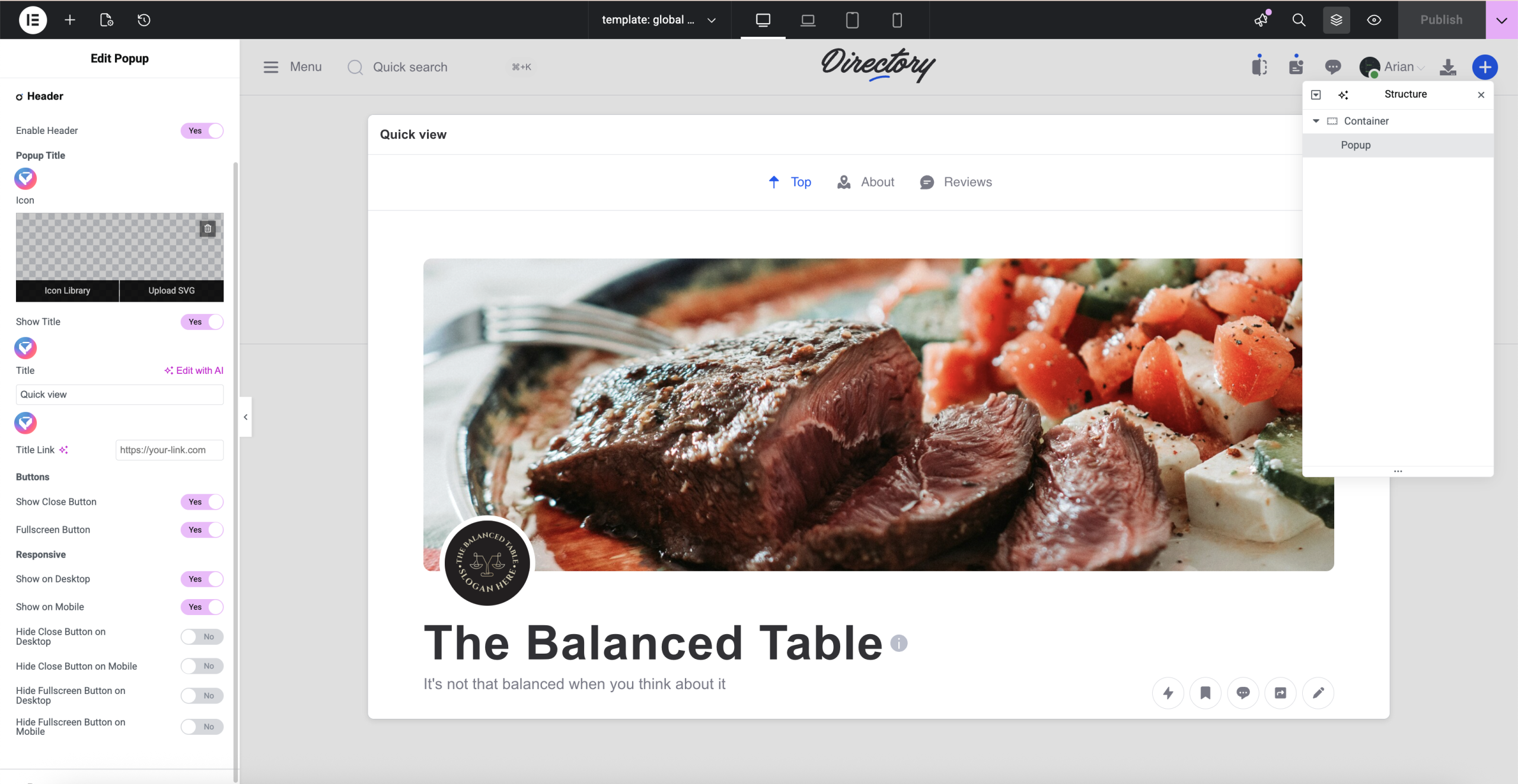 The Popup Widget is used to create a popup. You can place it anywhere, such as in an Elementor template, a page, or an EA4V Global Template.