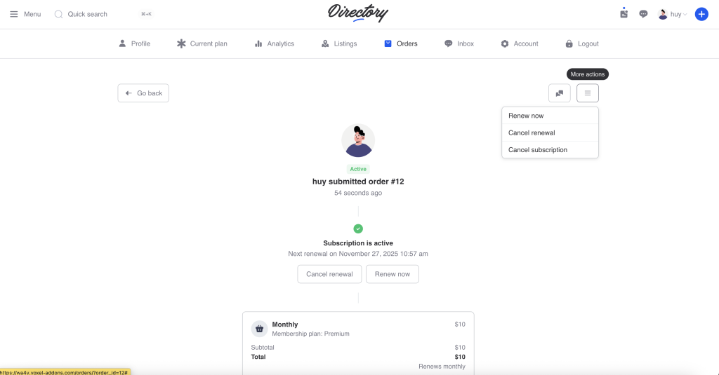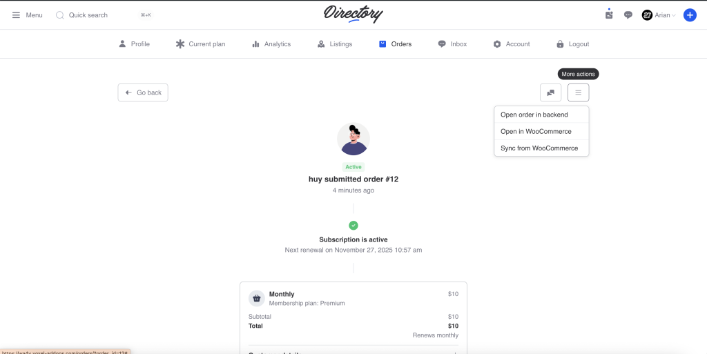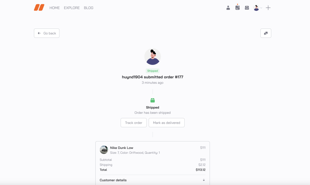 On the customer side, if the order is shipped, they can click the “Track Order” button and mark it as delivered.